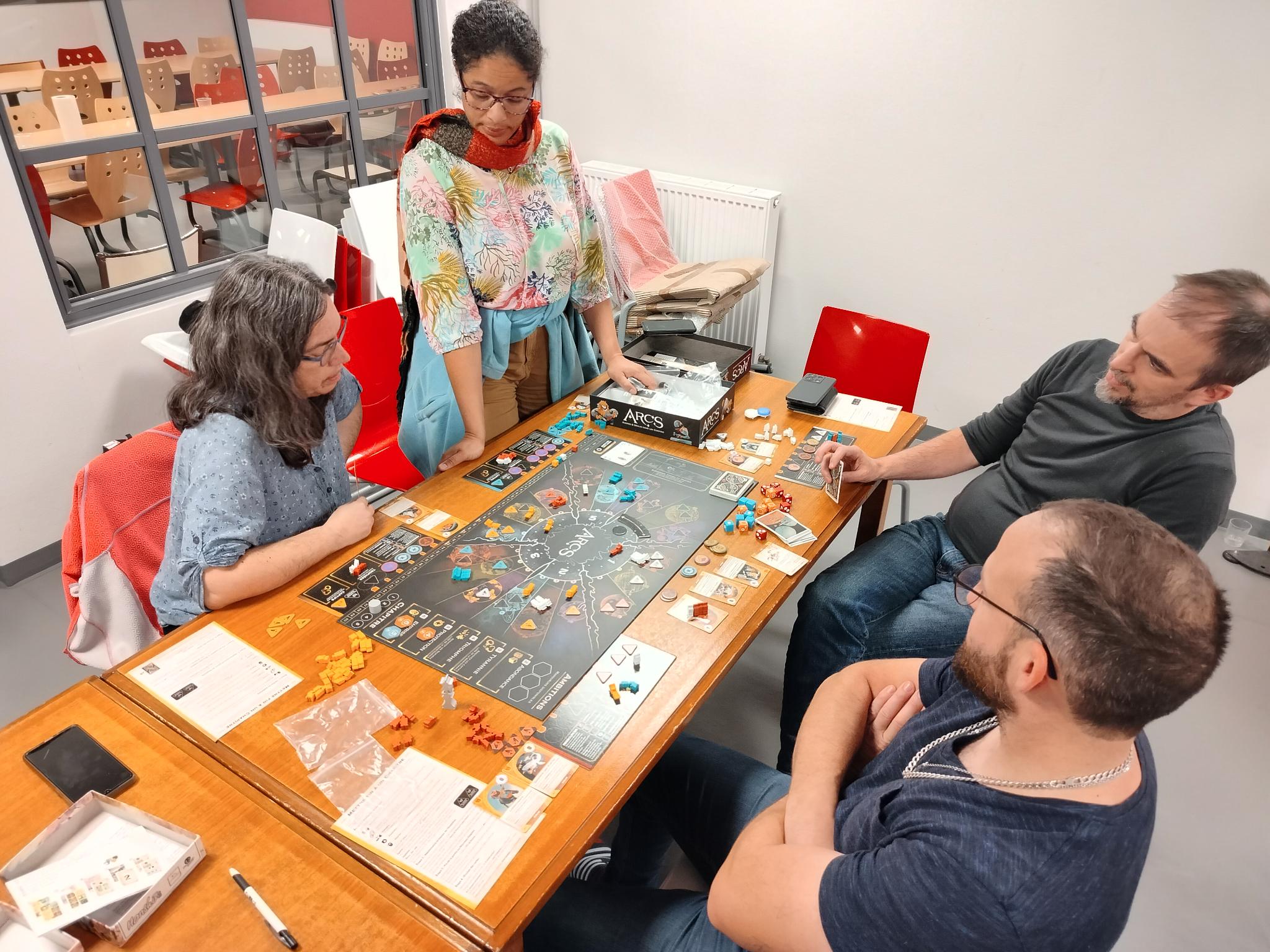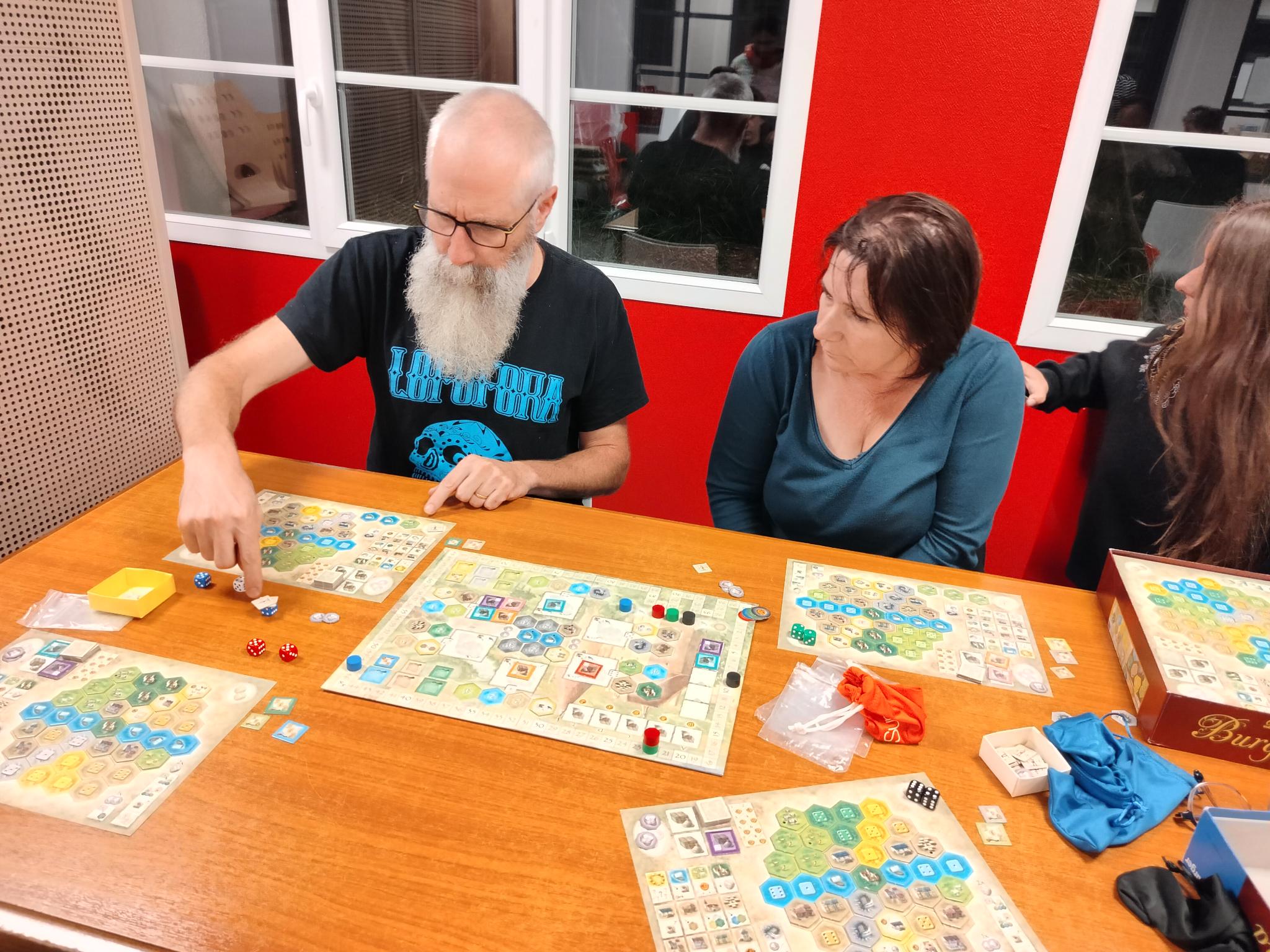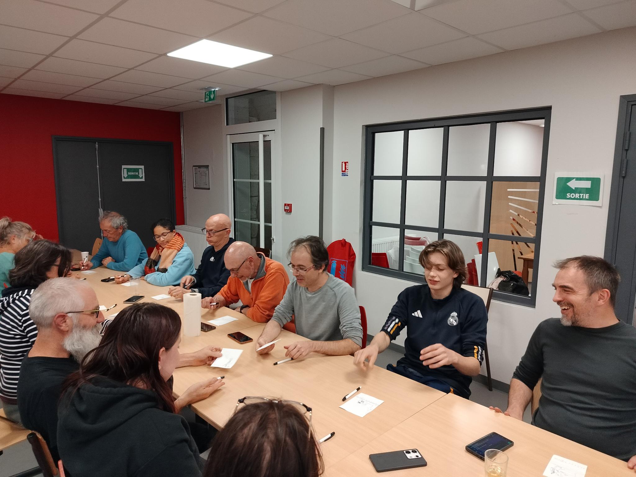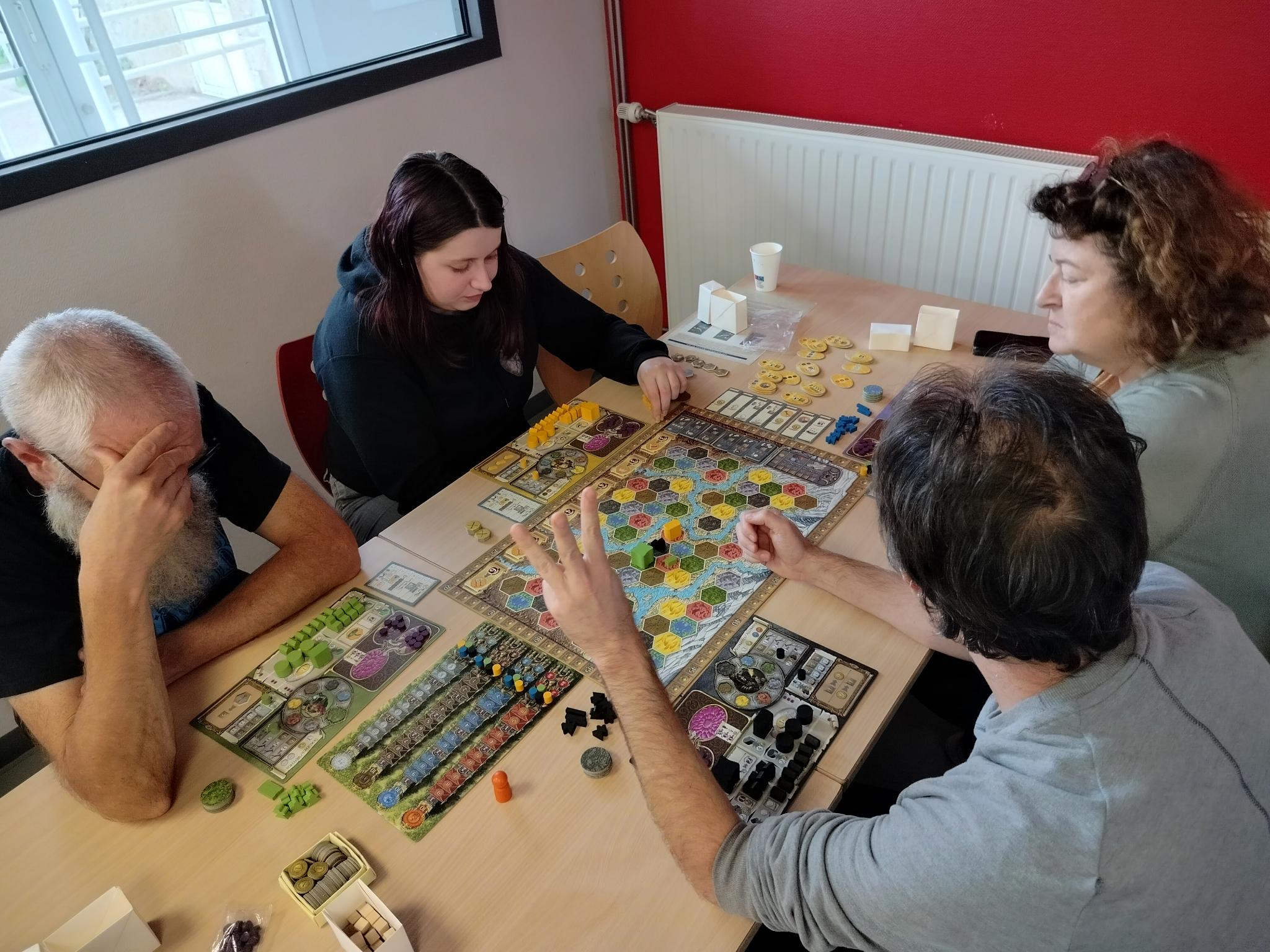 Nos amis d’Issoudun, Châteauroux et Bourges sont venus à l’Antre Des Jeux le 2 mars. Dans la matinée, nous avons poursuivi l’établissement des modalités du collectif, puis, après le déjeuner, nous avons expérimenté les jeux fournis par les éditeurs en vue de leur présentation lors des Festivals.