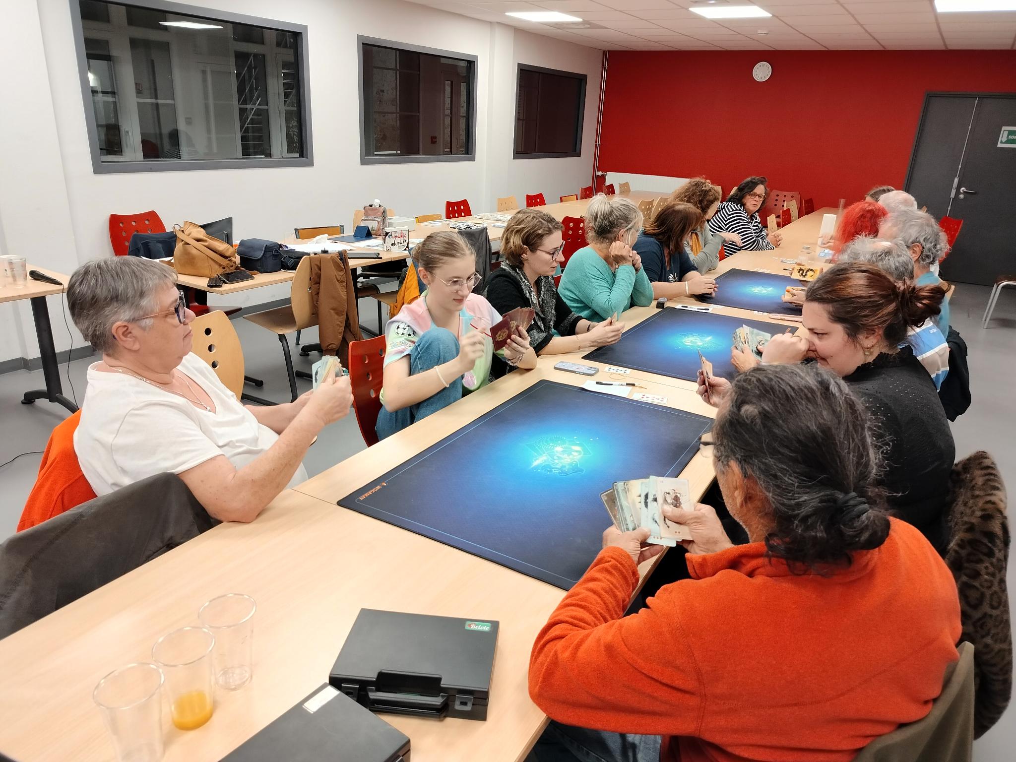 Notre tournoi semestriel de belote s’est déroulé à l’Antre des jeux le 21 mars. Pour cette édition, seize participants se sont engagés dans quatre parties. Danielle a triomphé en battant Nicolas de seulement 30 points et Crystal a pris la troisième position avec un écart de 38 points.